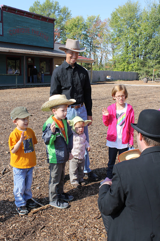 Today we went to one of our favorite local festivals...the Old West Festival. We channeled our inner cowboys/cowgirls and spent the day having an amazing adventure in Dodge City. The kids (and honestly, the adults too...) had a blast. In fact, as we had "dinner" at Kocanut Joe's Frozen Yogurt tonight Sam said to me "Thank you Mom for the best day ever". That sums up our day. I should say before you look at these pictures that my youngest insisted on wearing his Yoda hat ALL DAY LONG. It was quite adorable. Deputy Yoda had a fabulous day. And it made me feel more at ease at the festival, I figured if he wandered off at the Festival that everyone would know who we were looking for if we lost him. "Hey, I lost my kid, and he looks like Yoda". Fortunately though, he stayed with us...or should I say, fortunately, my dad followed Henry all day. He let Henry explore and check things out and kept a close eye on him so that I could hang with the older kids. Even when Henry got all hopped up on Root Beer and Kettle Corn dad kept up with Henry and his endless energy. And my Uncle Paul & cousin Kevin joined us at the festival for some fun times in the wild west. It was a beautiful and memorable day!